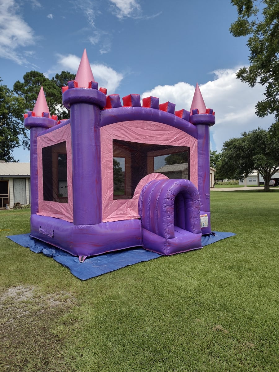 Perfect for the little princess in your life! This Fun Jump is sure to make any little girls party memorable with it's oversized bouncing area and beautiful shades of pink and purple. If the purple marble swirl and shiny pink wasn't enough to impress you we also threw a built in basketball hoop in the mix just so we could be absolutely sure that her party is a hit! You can reserve it right here on the site or give us a call here Contact Lafayette Fun Jumps