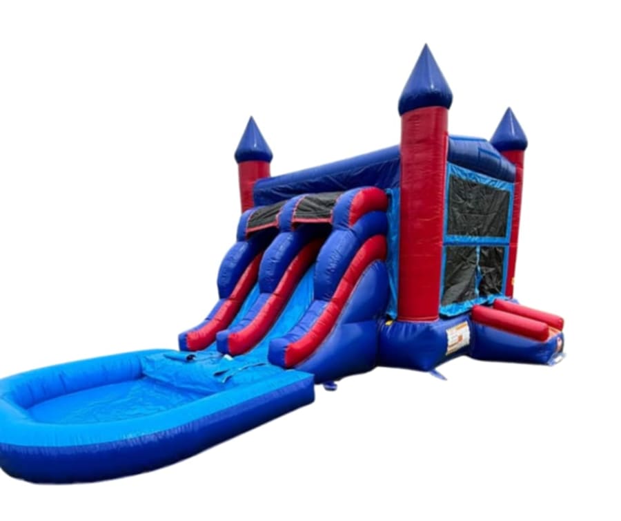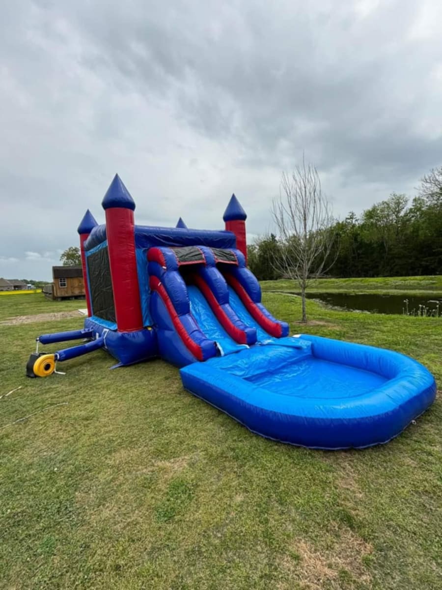 Looking to add a splash of excitement to your next event in St. Landry parish or surrounding areas? 🎉 The Blue Castle Dual Lane Combo with Pool offers the perfect blend of fun, adventure, and refreshing playtime. Designed with vibrant red and blue colors, this inflatable combo is sure to captivate the kids.