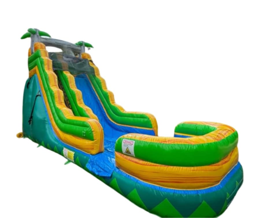 Transform your event into a tropical paradise with our stunning 19 Ft. Tropical Plunge. This exhilarating inflatable slide is perfect for any occasion, offering endless fun and excitement for both kids and adults. Its vibrant blue, green, and yellow color scheme brings a splash of the tropics to any backyard or event venue, ensuring a memorable experience.